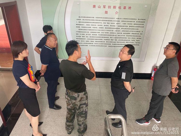 2020年7月31日上午,邢台市威县人社局局长王广益,退役军人事务局局长焦春华在唐山市路北区退役军人事务局局长毕尚可的陪同下,来到唐山市军创家园创业孵化基地考察指导。