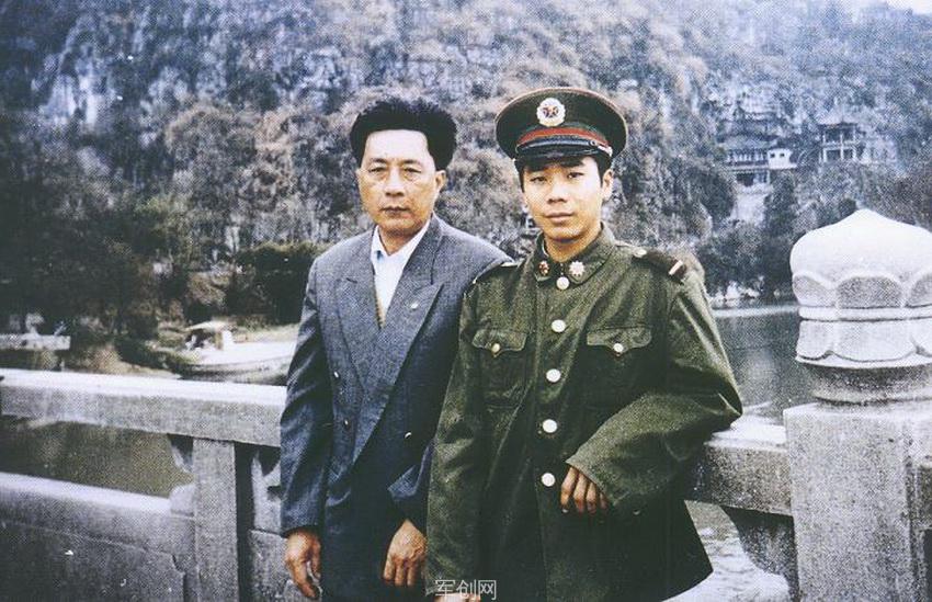 李向群(右)入伍后在驻地和父亲李德清合影(资料图片)。新华社发