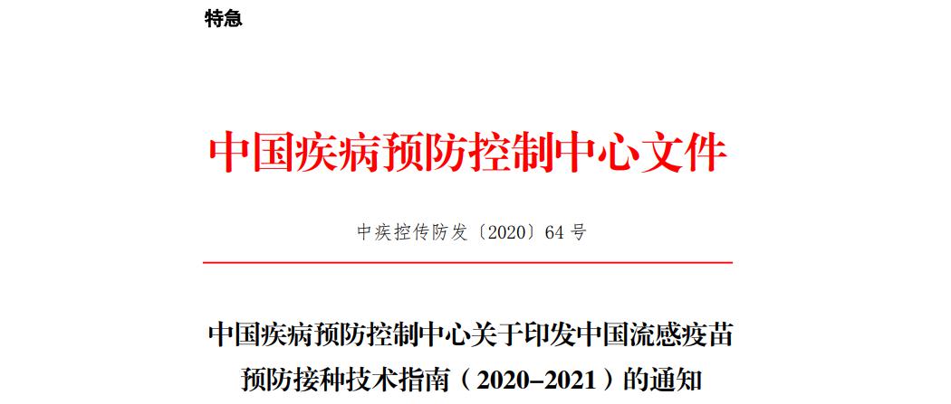 9月11日,中国疾控中心组织发布特急文件《中国流感疫苗预防接种技术指南(2020-2021)》(以下简称《指南》)。