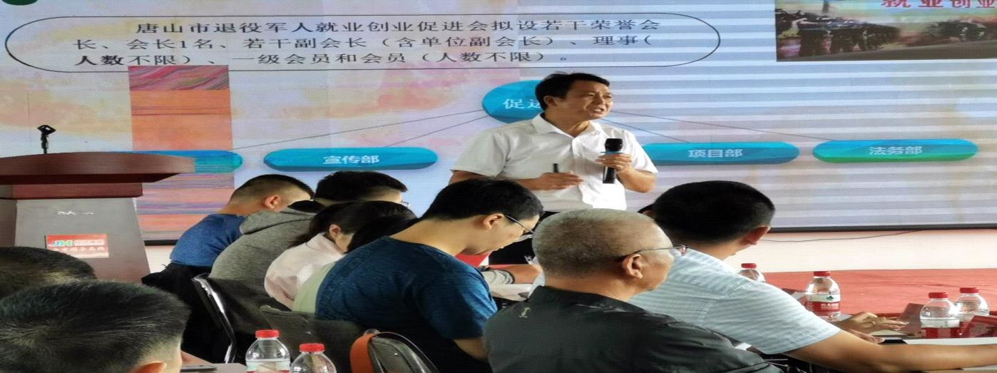 2020年6月29日,唐山市退役军人就业创业促进会召开成立大会,唐山市退役军人事务局、民政局、行政审批局领导出席会议。