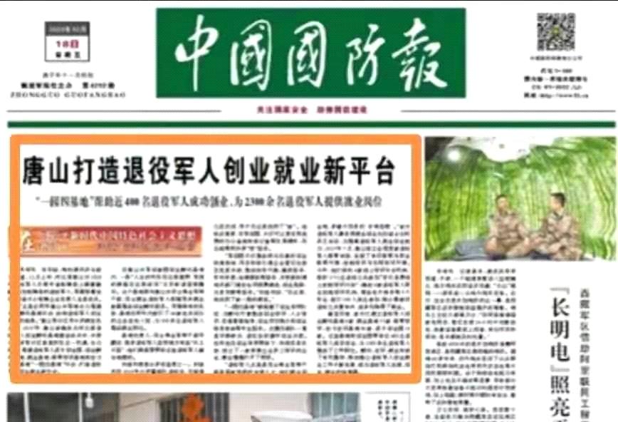 2020年12月,中国国防报头版头条宣传唐山打造退役军人创业新平台,唐山退役军人就业创业平台在全国发挥了引领作用。