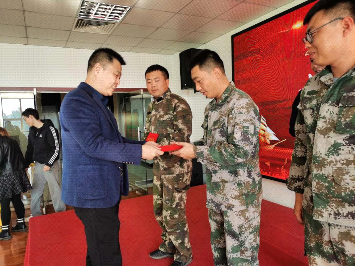 省退役军人事务厅李文彬副处长为获得优秀教官的退役军人颁奖