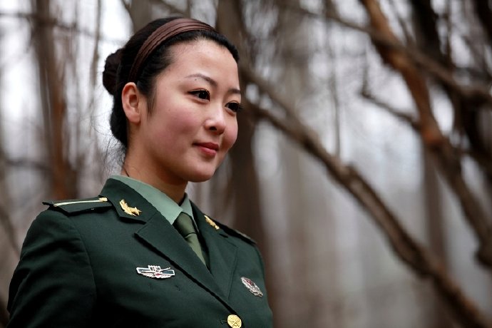姑娘惊奇地回过头来,见背后竟站了一位武警,她眼里闪烁着惊异光彩的同时,脸上泛起了一道红晕。