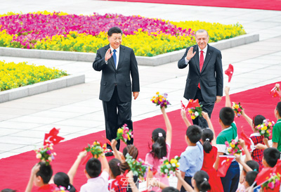 7月2日,国家主席习近平在北京人民大会堂同土耳其总统埃尔多安举行会谈。这是会谈前,习近平在人民大会堂东门外广场为埃尔多安举行欢迎仪式。
