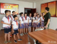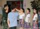 胡班长在纠正孩子们的手型。