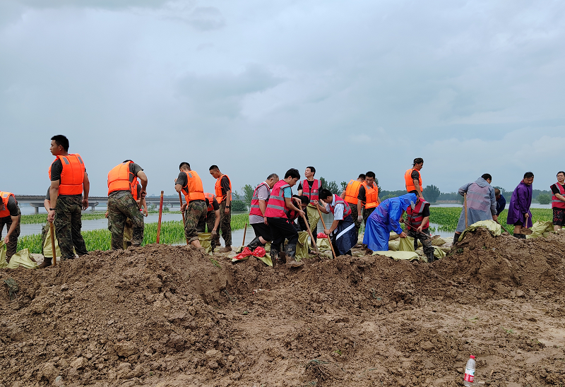 徐水区退役军人积极参与加固堤坝、河道巡察、抢险排堵、设置警戒线、引导危险地带的村民紧急转移等防汛救灾工作。