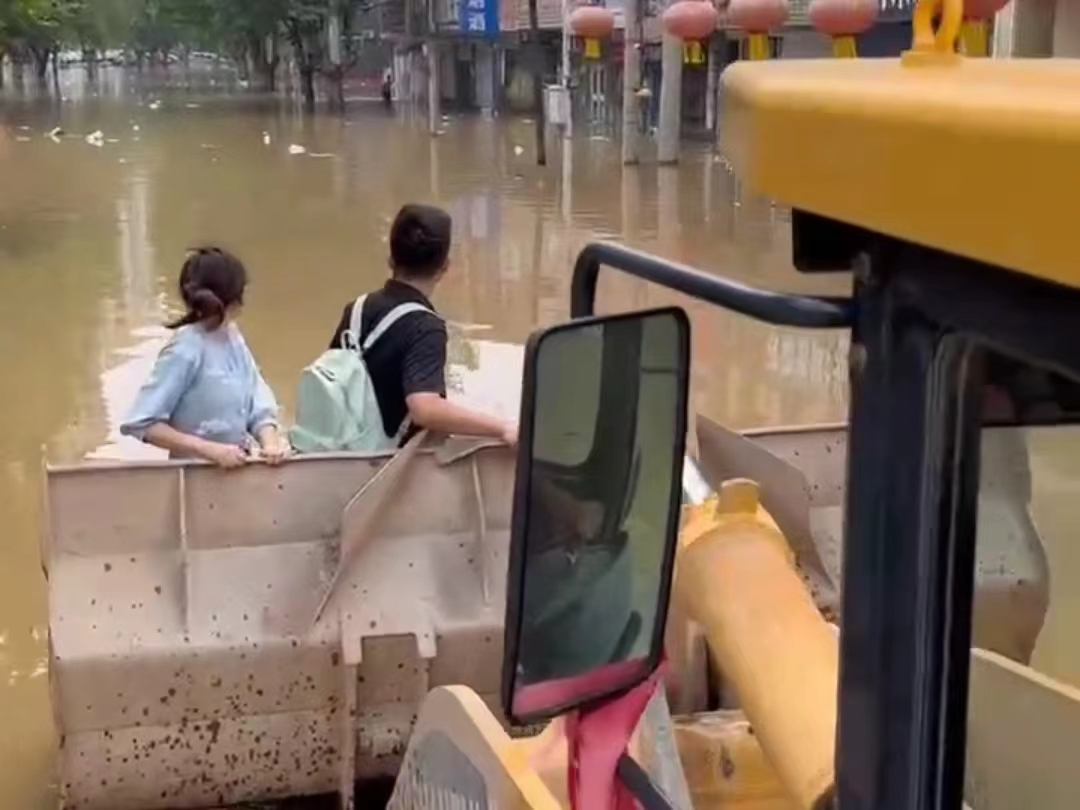 涿州市松林店镇韩村“兵支书”王学友组织63名退役军人志愿者,出动三台装载机、三台挖掘机、一艘冲锋舟和两艘橡胶艇,加入救援行动。