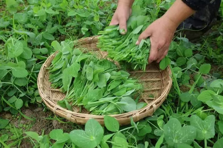 豌豆尖跟折耳根的生命力都很强,一般无病虫侵扰,所以不用打农药。在它们发育的时节都生长得很多,但是春节期间,吃豌豆尖,那可是比吃肉还奢侈的事情,四川的老乡们在外地吃豌豆尖就是吃到了浓浓的家乡味。