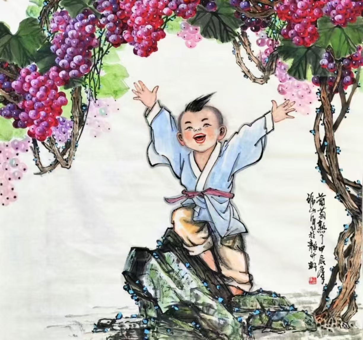 犹记儿时贺岁天,红妆裹体笑眉弯。春联妙语厅院贴,