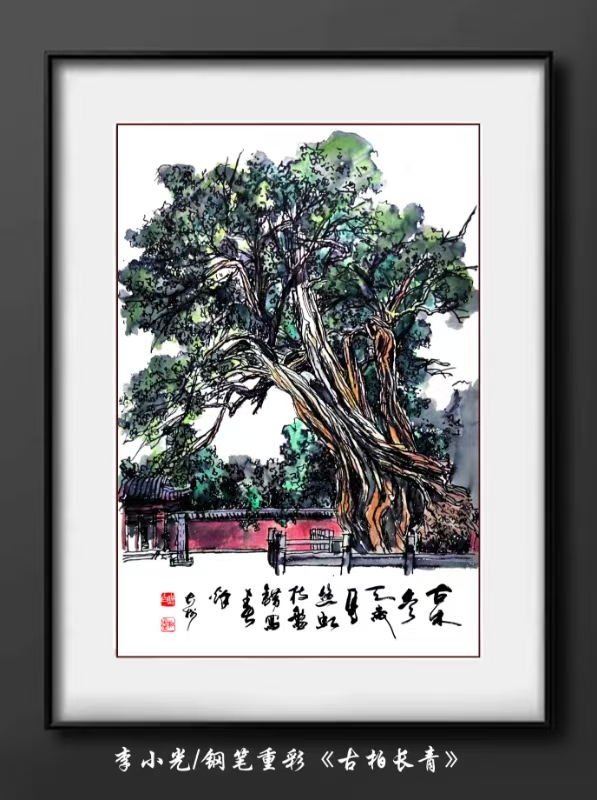 李小光/钢笔重彩《古柏长青》