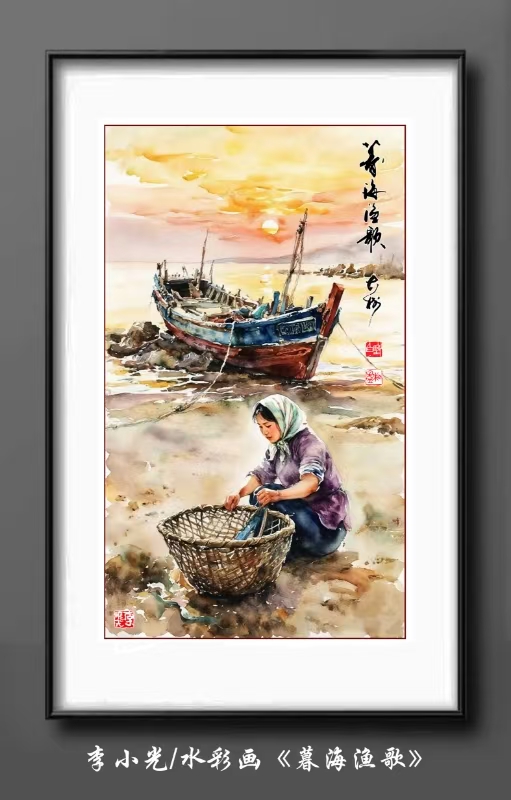 李小光/水彩画《暮海渔歌》