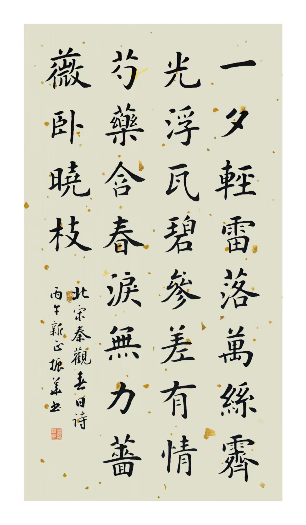 北宋 秦观《春日》:一夕轻雷落万丝,霁光浮瓦碧参差。有情芍药含春泪,无力蔷薇卧晓枝。