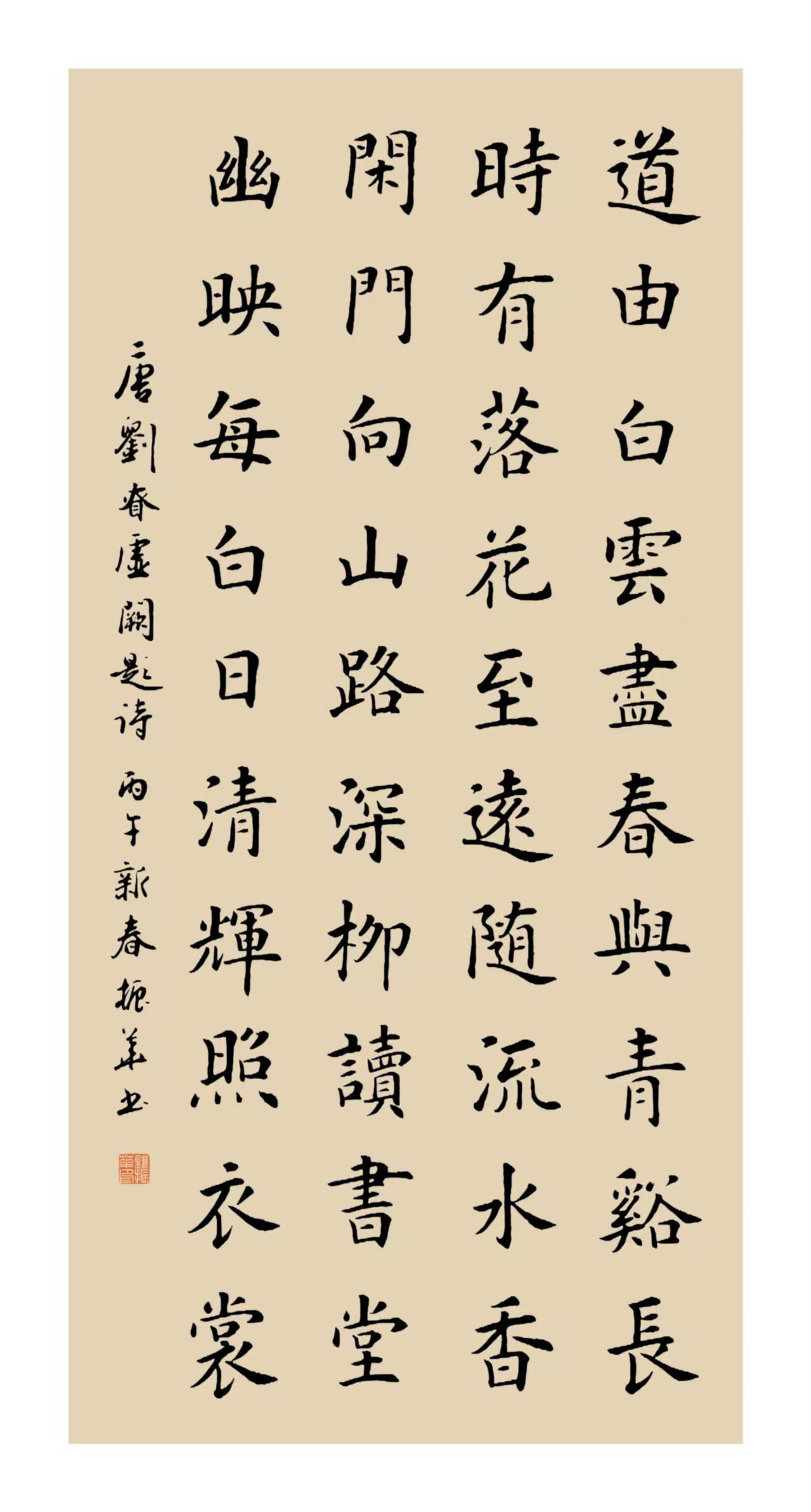 唐 刘眘虚《阙题》:道由白云尽,春与青溪长。时有落花至,远随流水香。闲门向山路,深柳读书堂。幽映每白日,清辉照衣裳。