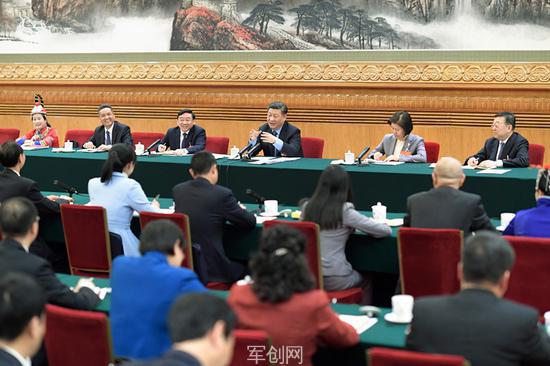 3月4日,习近平来到全国政协十三届二次会议文化艺术界、社会科学界联组会现场。