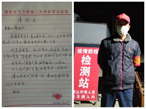 三合村退伍军人、党支部书记张永军,疫情前面,他再现英雄本色,第一时间向党组织交上了一份“请战书”,在平凡的工作岗位上继续为“疫”而战。他从大年三十开始,一直坚守在村委会的工作岗位上,鼓励党员、其他退役士兵、民兵、村民代表、群众齐心协力,坚决打赢疫情防控阻击战!“保家卫国是军人使命所在,我们虽然退伍,但疫情当前,我们应当冲在第一线,这是责任,也是义务。