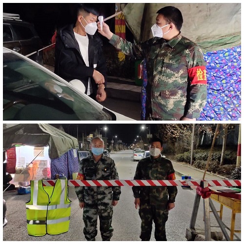关二村退伍军人代有刚主动找到党支部书记荣建东请缨,要求加入"疫情防控突击队"参与疫情防控工作。"冲在疫情防控的最前线,是我义不容辞的责任。"每天,他都积极协助大家进行排查,并对回馈信息进行梳理登记。排查、巡逻、宣传……各项工作量越来越大,他却丝毫没有抱怨,上级如何要求,他就怎么去做,每天都要加班到九、十点钟。他勤勤恳恳,脚踏实地,为村民们守门把关。在抗疫第一线上坚守阵地。在他的感染下,身边和他一样的不少退役军人也纷纷加入了"疫情防控突击队",参与到村里疫情防控工作中,筑起一道道坚固的"迷彩防线"。每天,他们身着迷彩服,带着疫情宣传小喇叭在村里来回巡逻,风雨无阻。